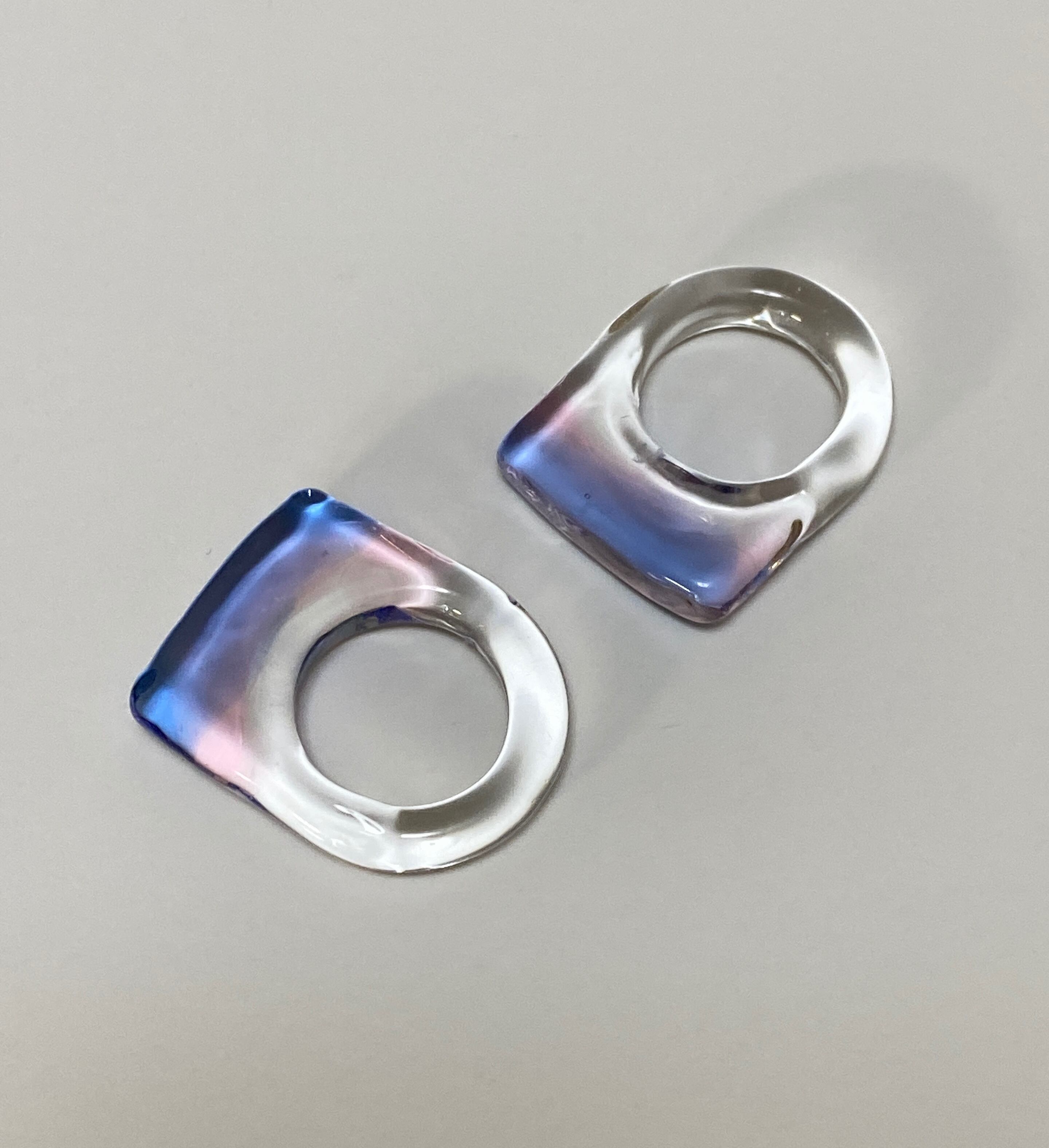 edgeを効かせてた個性的なring。カラーは雨に咲く花々をイメージして、ピンクからブルー、パープルへと角度によって色の違いも楽しめるデザインです。同じカラーのシンプルなgradation circleとの組み合わせがおすすめ。