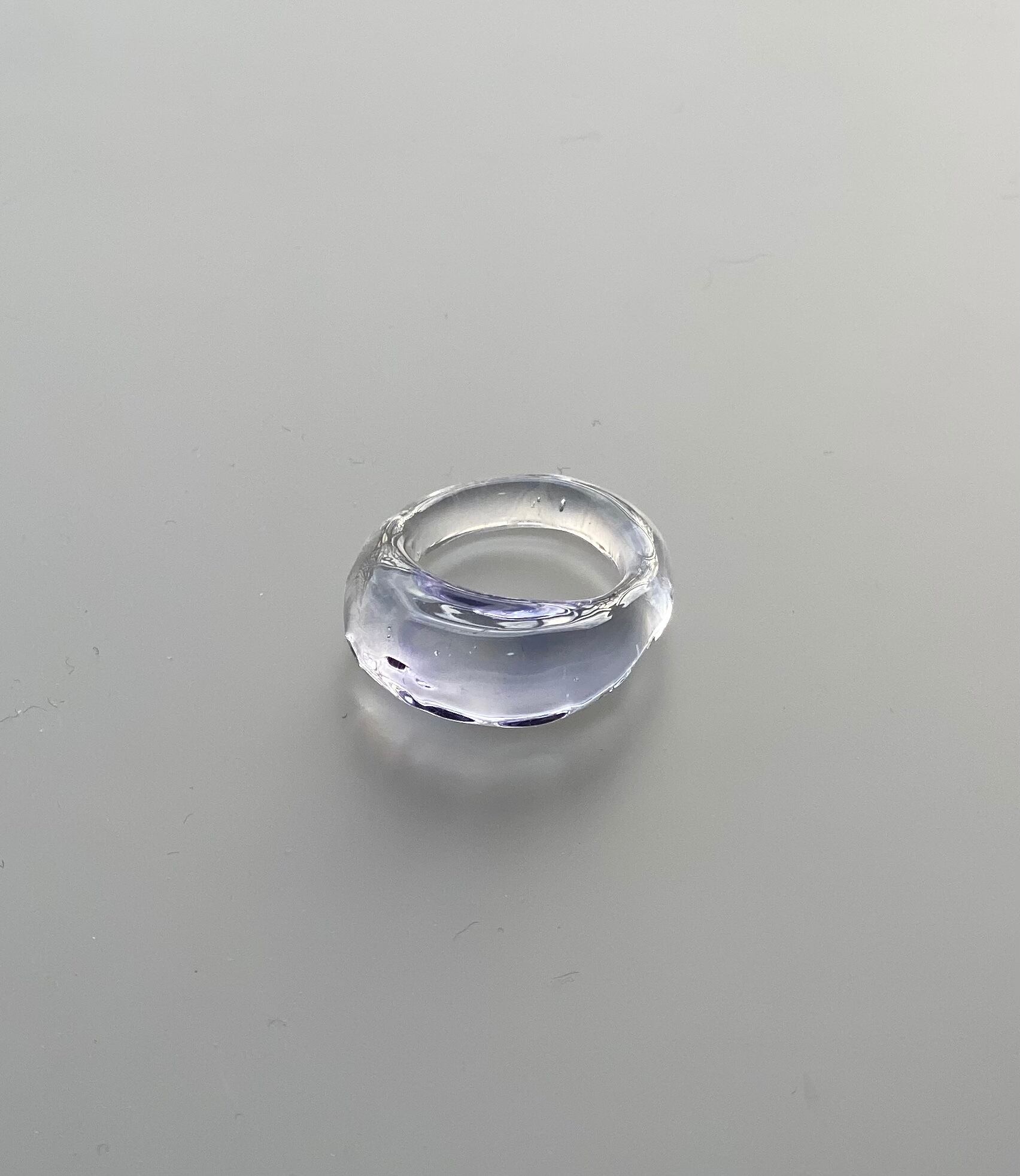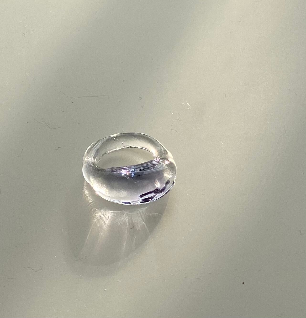 水のゆらぎをイメージして、重ね付けしやすいシンプルなリングにしました。キラキラと輝くガラスが楽しめるデザインです。